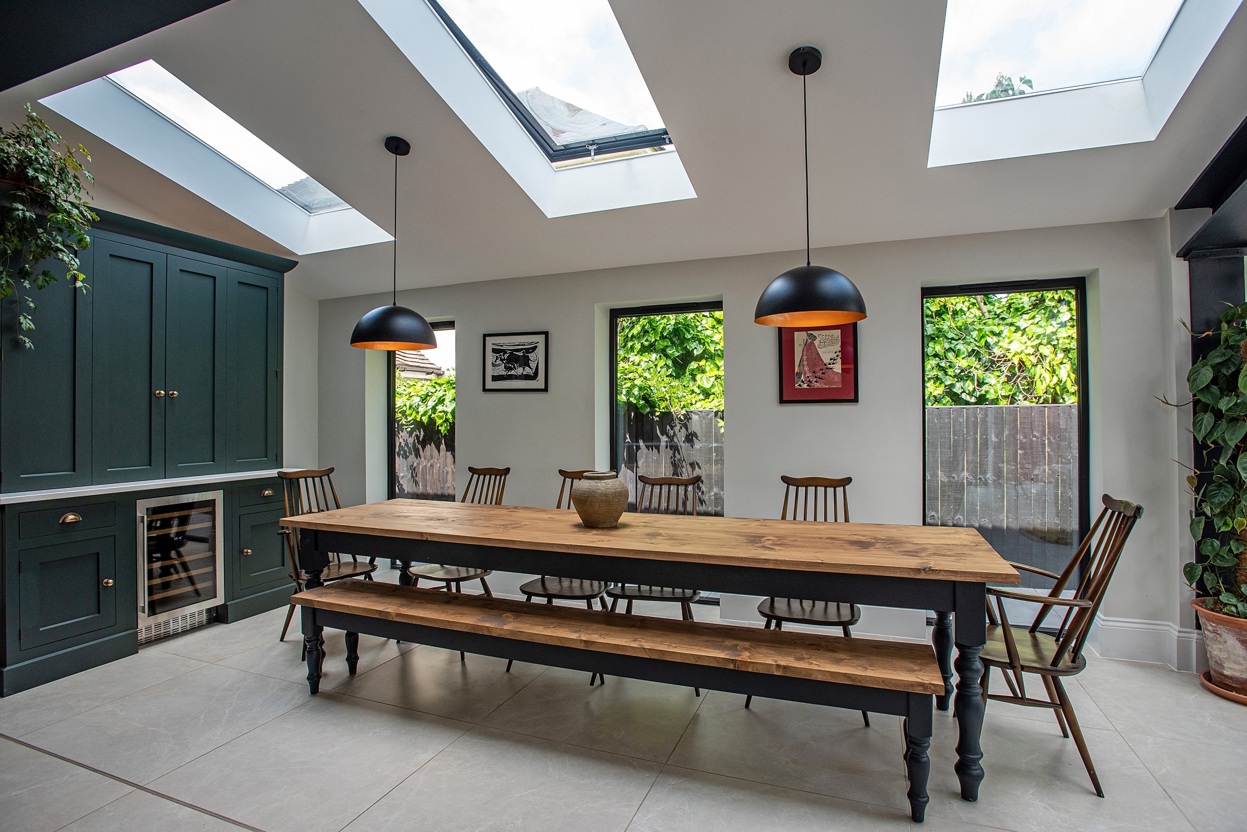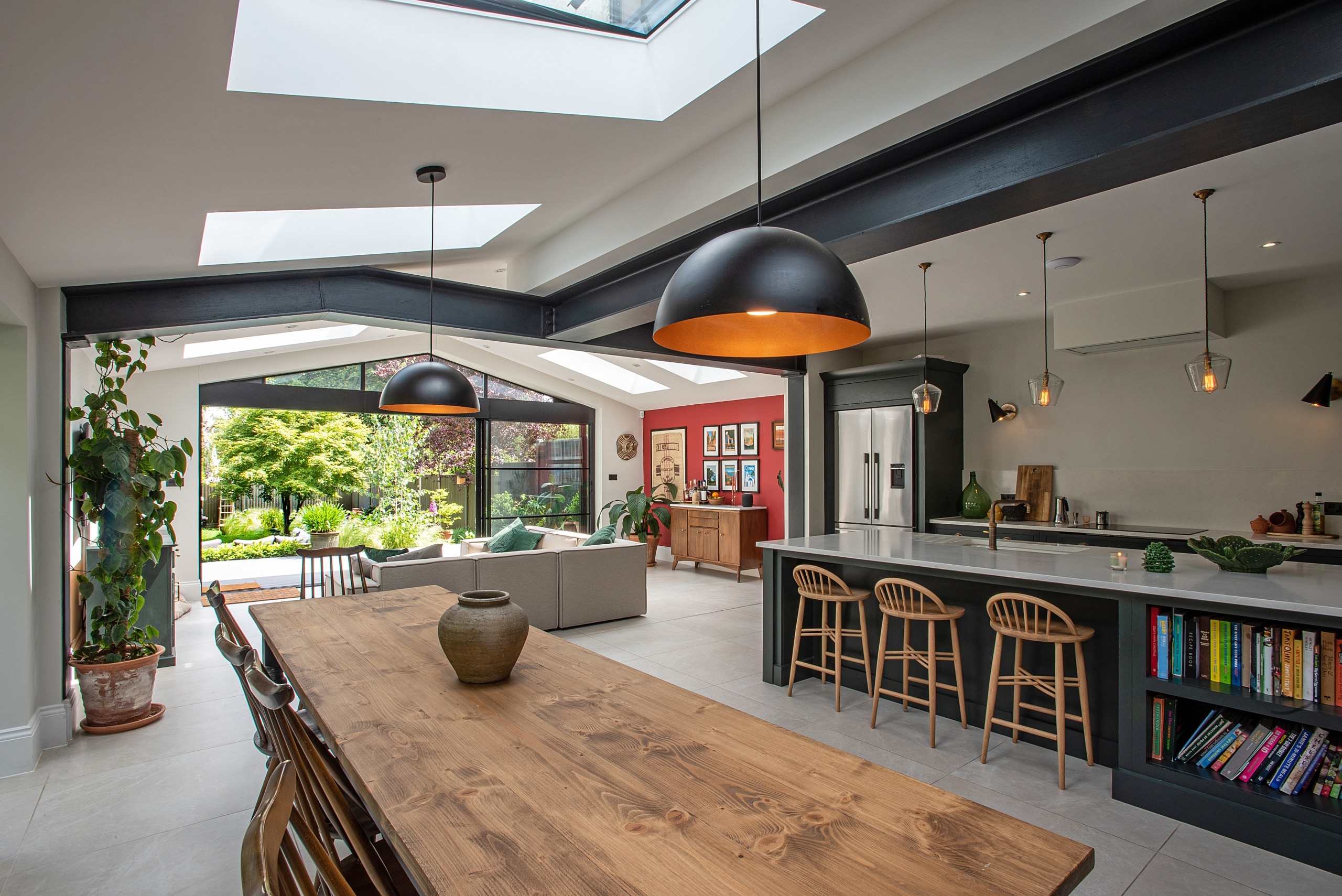 Transform this tired, semi-detached, two storey house to give our clients a huge open plan, family living space, complete with modern, bespoke Kitchen and fully functional island. Total renovation throughout and creation of an additional split level Master bedroom with balcony. This complete enhancement was achieved with a single storey extension and loft conversion.