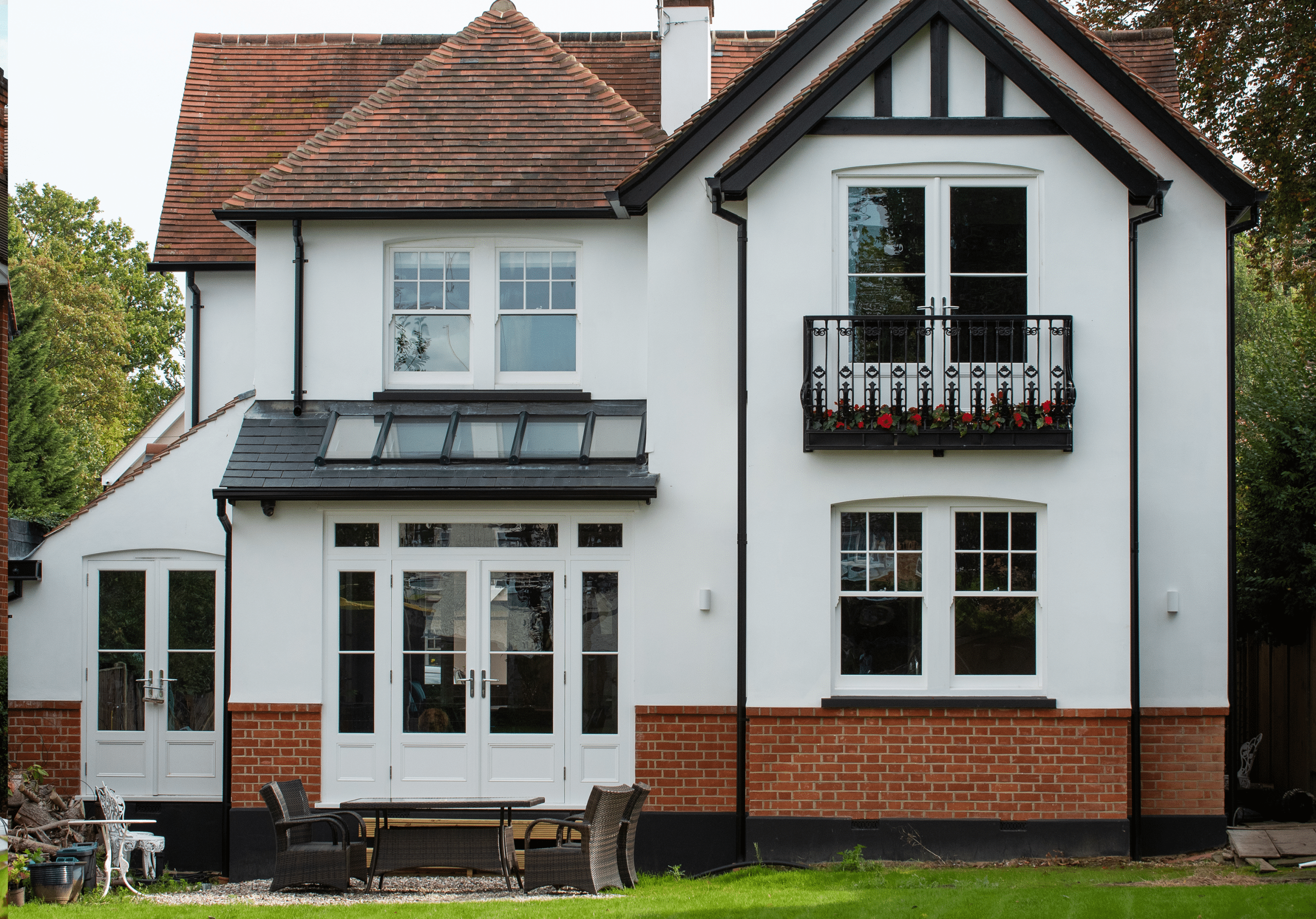 Our client’s purchased this detached house with a view to bring this tired Victorian property back to its former glory. The tired exterior was completely transformed by the creation of a stunning arched porch complete with Victorian style glazing and detailed lead roof and full render. The creation of a double and single storey extension and internal re-configuration provided much needed space and filled the previously dark property with light and warmth. The cleverly designed rear of the property gave our clients a light and bright kitchen and dining space, complete with an ultra-modern dual coloured matt finish Kitchen and large marble effect island. It was very important to our clients that the property celebrated the old and welcomed the new. This was achieved with sympathetic refurbishment, using Victorian styled radiators, traditional coving and beautiful panelling combined with the introduction of modern pieces. The stunning hallway complete with traditional staircase and stained glass window provides a warm welcome to this beautiful family home. The complete enhancement was achieved with the creation of both a single storey and double storey extension.