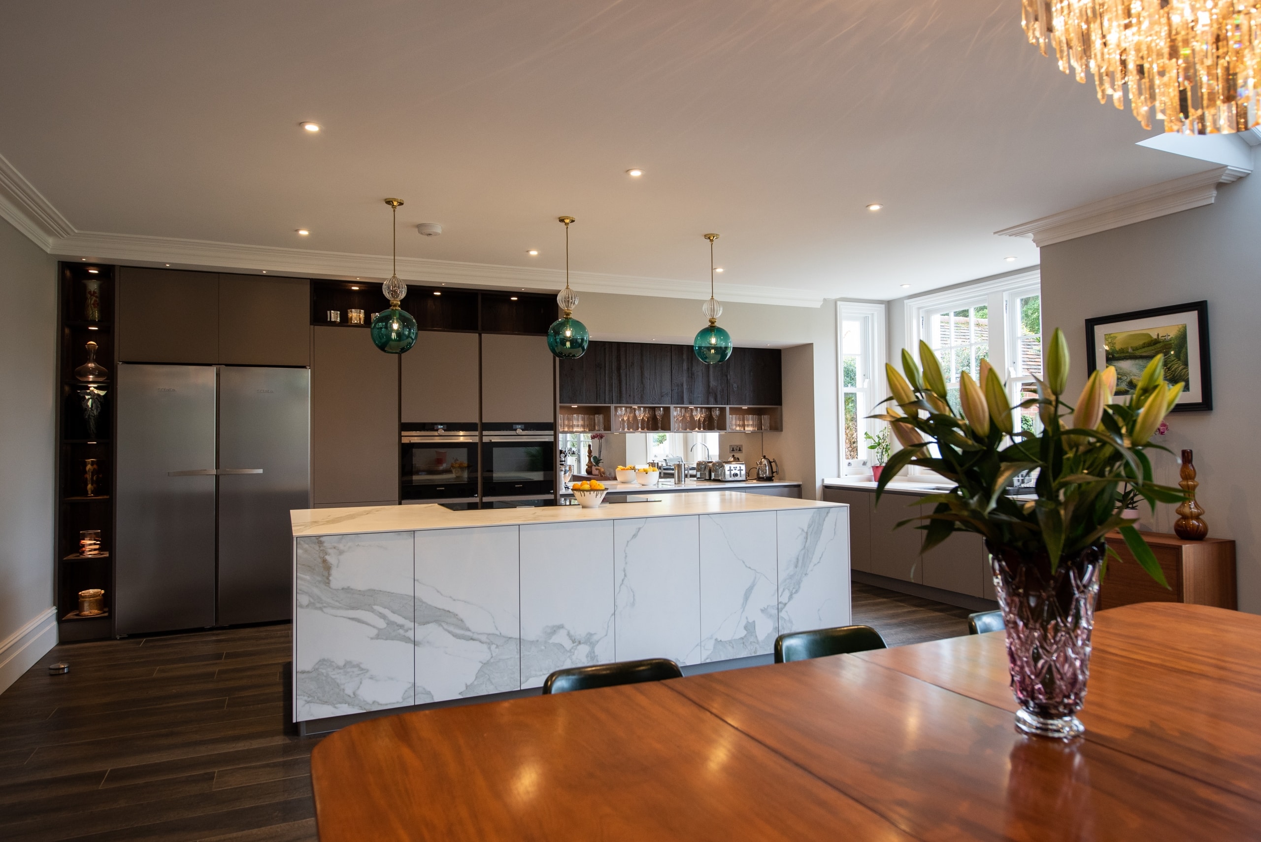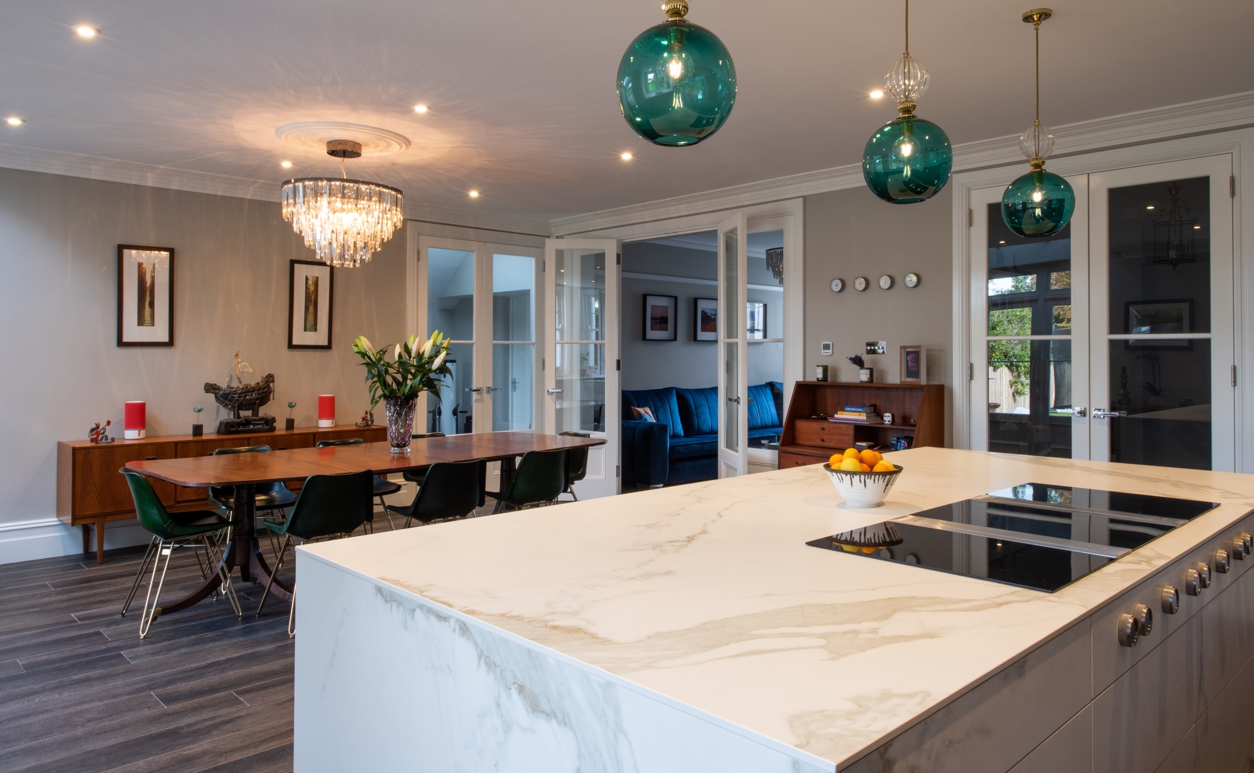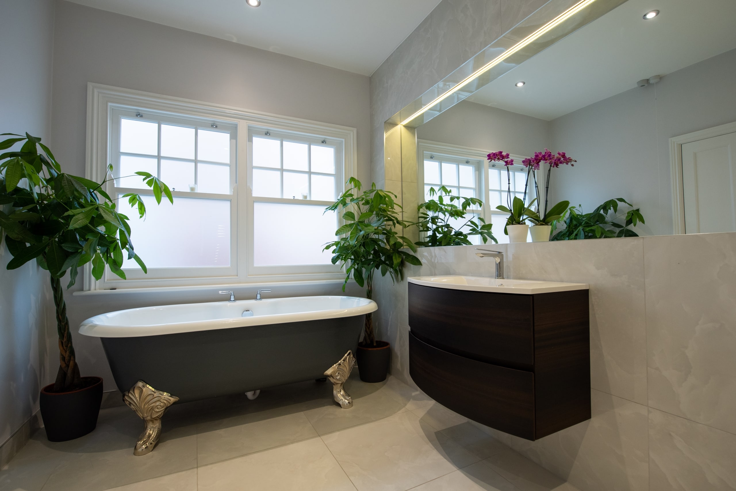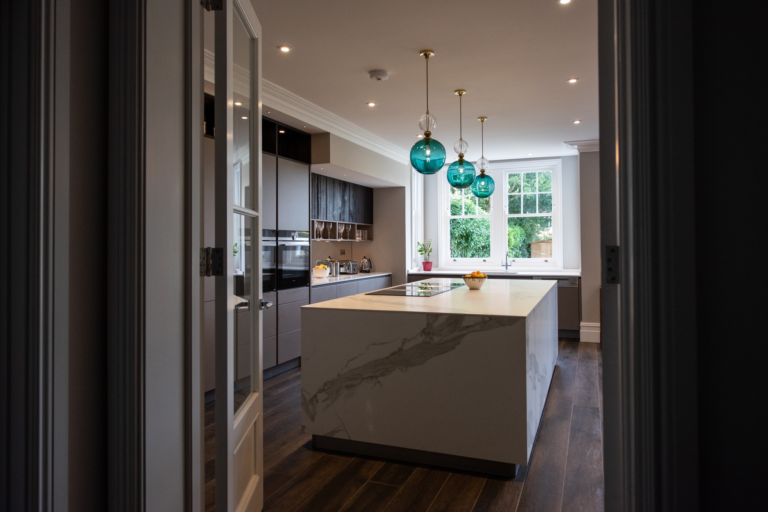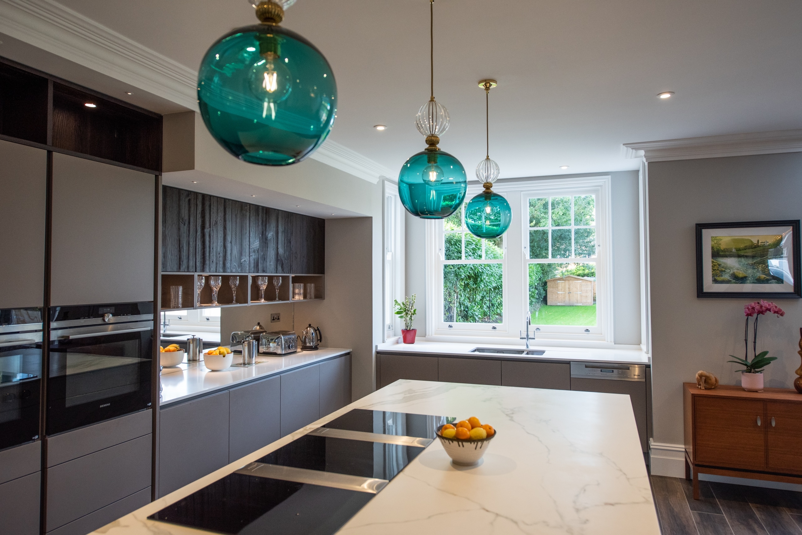 Our client’s purchased this detached house with a view to bring this tired Victorian property back to its former glory. The tired exterior was completely transformed by the creation of a stunning arched porch complete with Victorian style glazing and detailed lead roof and full render. The creation of a double and single storey extension and internal re-configuration provided much needed space and filled the previously dark property with light and warmth. The cleverly designed rear of the property gave our clients a light and bright kitchen and dining space, complete with an ultra-modern dual coloured matt finish Kitchen and large marble effect island. It was very important to our clients that the property celebrated the old and welcomed the new. This was achieved with sympathetic refurbishment, using Victorian styled radiators, traditional coving and beautiful panelling combined with the introduction of modern pieces. The stunning hallway complete with traditional staircase and stained glass window provides a warm welcome to this beautiful family home. The complete enhancement was achieved with the creation of both a single storey and double storey extension.